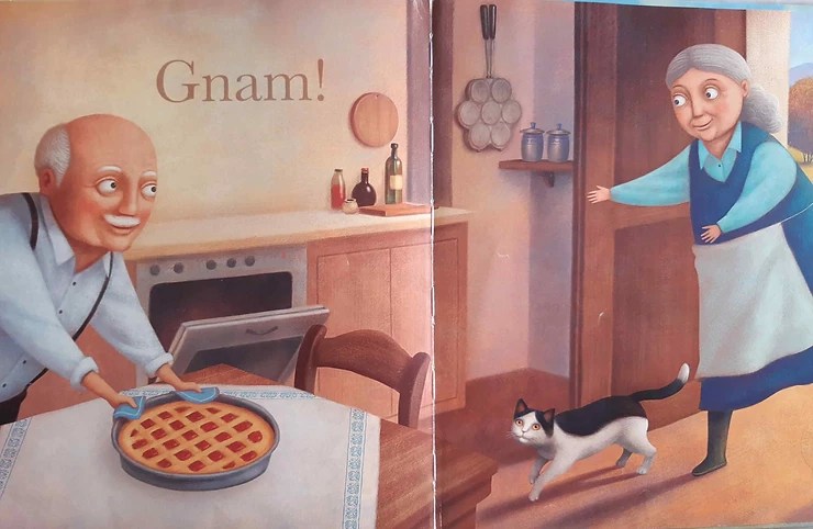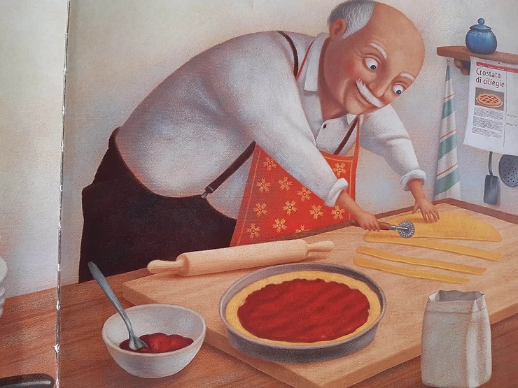 Il nonno la saluta e la vede scomparire all’orizzonte: anche per lui si prospetta una giornata di intenso lavoro: tra lavatrici da stendere e piatti da lavare..trova pure il tempo di preparare una crostata di ciliegie!